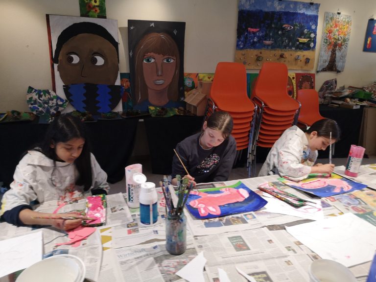 Gleichaltrige Gruppen arbeiten gemeinsam an einem Projekt. Dabei lernen Kinder und Jugendliche verschiedenste Techniken und Materialien kennen.